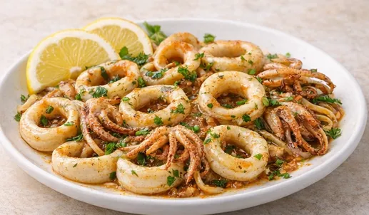 - Adicionar as lulas e saltear 3–4 minutos. É importante não cozinhar demasiado para não ficarem rijas.